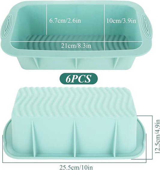 RHBLME 6 Pack Silicone Loaf Pan - Non-Stick Silicone Bread Loaf Pan, 10 x 4.9 x 3.9 Inch, For Bread, Meatloaf & More