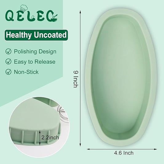 QELEG Silicone Oval Banana Bread Pan (2 Pack) - Non-Stick Silicone Cake Bread and Meat Bakeware for Oven, Pot Baking in Home, Kitchen & Bakery Use QLG0111-9x4.6x2.2 inch