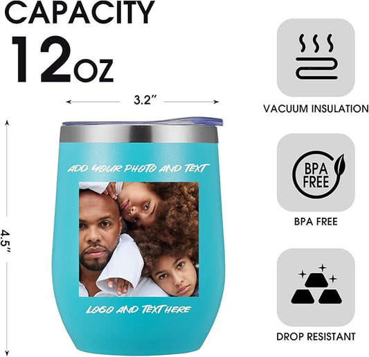 96 Pack Personalized Wine Tumbler,12oz Custom Stainless Steel Coffee Mug,Tumblers with Lids,Customizable with Picture and Names Engraving,Suitable for Woman,Men,Families and Travel